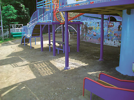 遊具の安全領域の範囲が、きっちりと確保されている一例です。