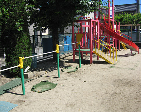 遊具や鉄棒下の安全性を高めて、しかも美しく変身しました。