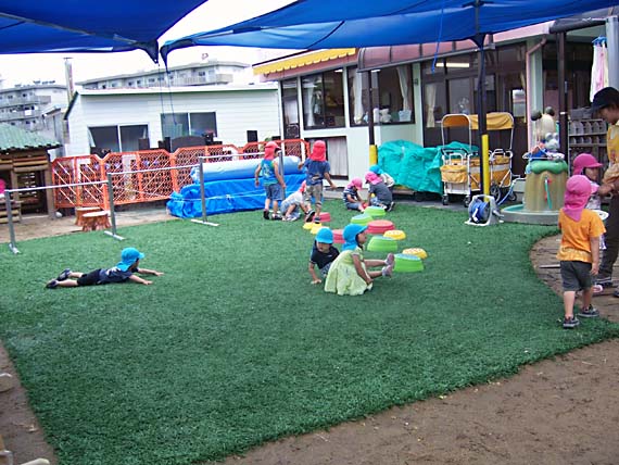 園庭・公園用ロングパイル人工芝(緩衝材付き)ハイブリッドターフPG