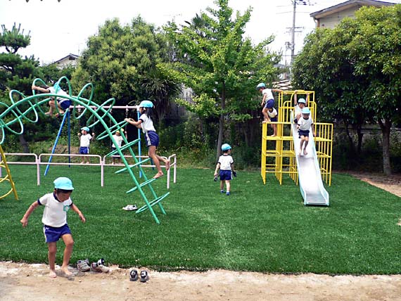 園庭・公園用ロングパイル人工芝(緩衝材付き)ハイブリッドターフPG