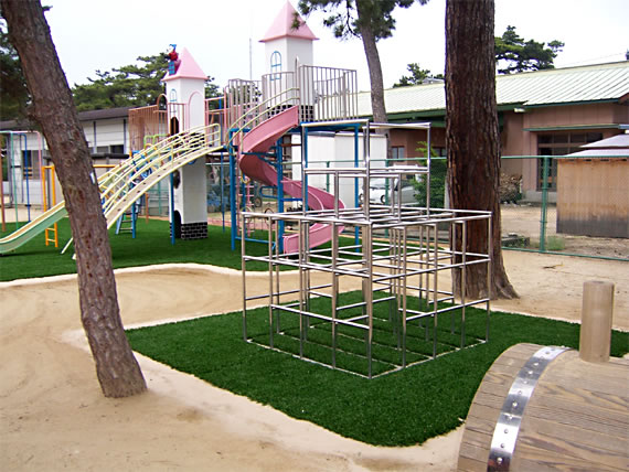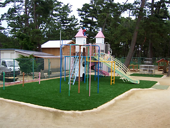 園庭・公園用ロングパイル人工芝(緩衝材付き)ハイブリッドターフPG