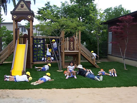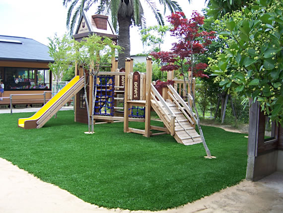 園庭・公園用ロングパイル人工芝(緩衝材付き)ハイブリッドターフPG