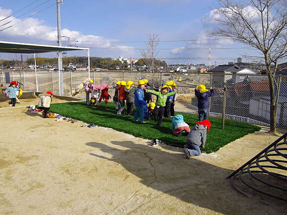 園庭・公園用ロングパイル人工芝(緩衝材付き)ハイブリッドターフPG