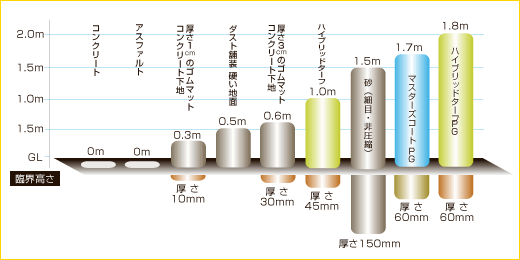 初期の工事費用は「ルーズフィル材料」より割高ですが、優れた衝撃吸収性と長期にわたる耐久性、メンテナンスフリーなどの長所を備えています。